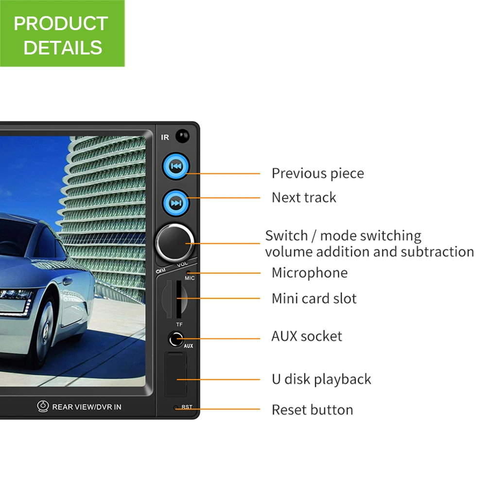Цифровой автомобильный стерео-блок in-dash 2-Din, подходит для большинства типов автомобилей.