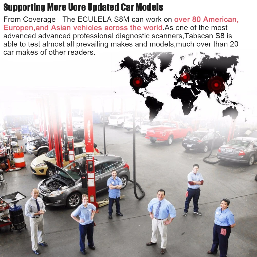 TabScan S8m инновационный высококачественный диагностический сканер, который вкладывает один миллион форм, строгий IP65 промышленный дизайн для повышения стабильности, может достичь многоцелевой, мульти-подключенной, мощной двухрежимной диагностики транспортного средства. С TabScan S8M входит в рынок, он определяет Новый диагностический опыт и производительность затрат, это лучший выбор для рабочих магазинов, гаражей, авто-станции обслуживания.