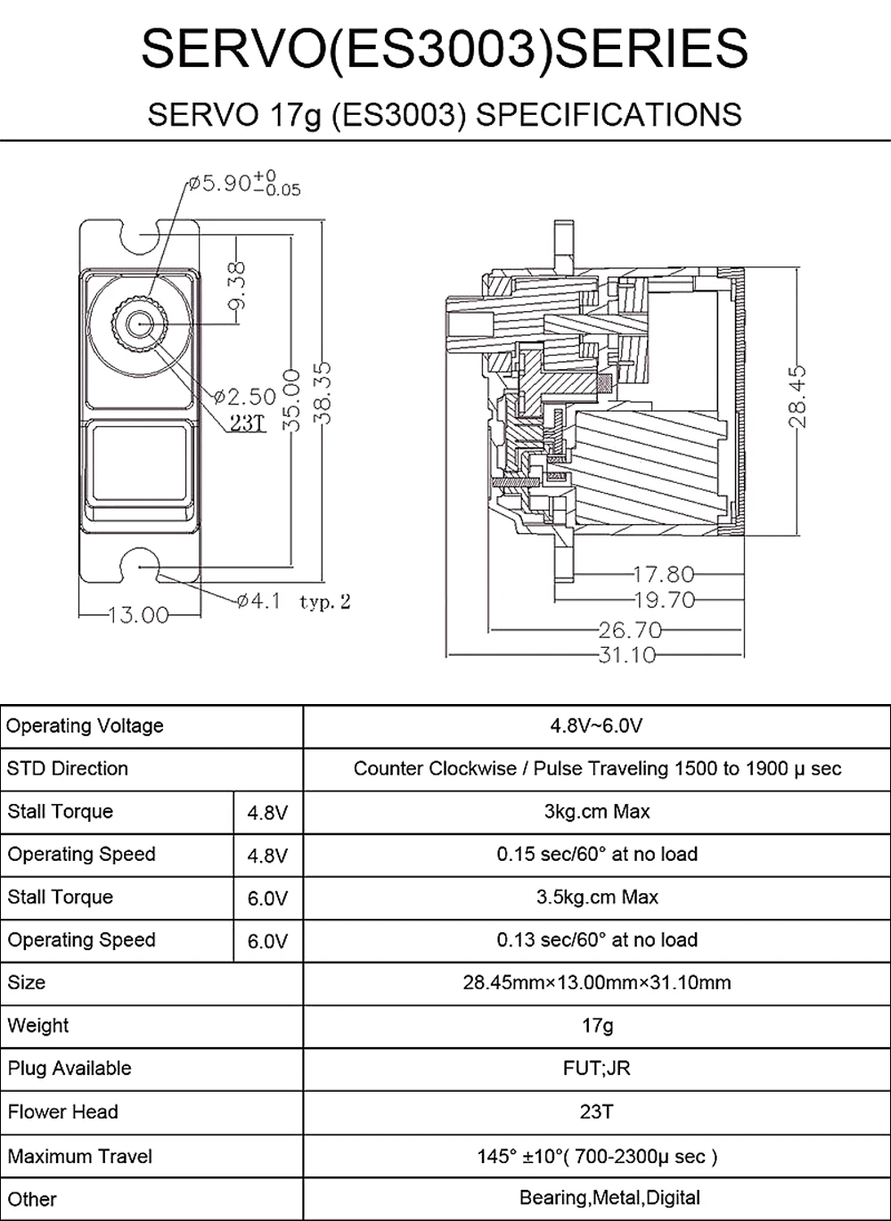 EMAX ES3003 аналоговый 17g металлический сервопривод