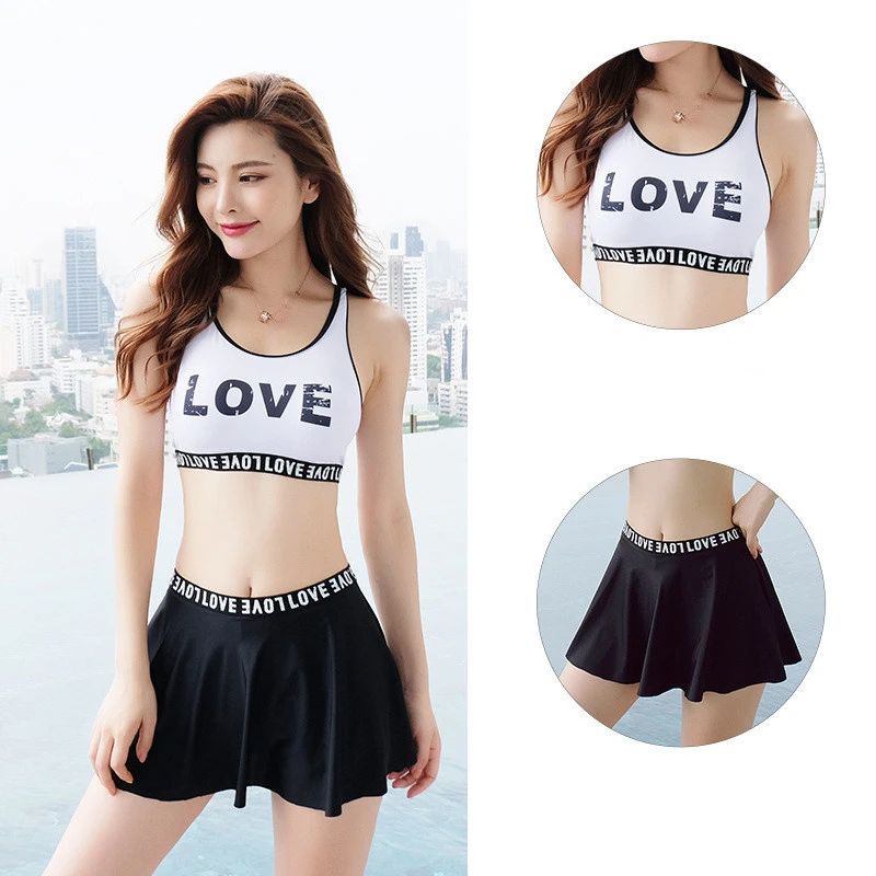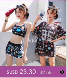Купальник из трех частей размера плюс танкини 2020 купальный костюм с буквенным принтом для женщин Купальники быстросохнущие купальные костюмы пляжное бикини XXL