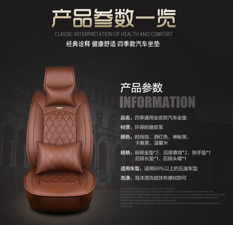 Материал: кожа (ПУ) Цвет: кофейный/черный белый/черный красный/бежевый Применимые модели:Универсальный(За исключением специальных моделей) Сидения: 1 место/5 мест/7 мест (по индивидуальному заказу) Описание стиля: 1 шт. стандартный выпуск: одно сиденье; 1 шт. Делюкс издание: одно сиденье, 1 Подушка, 1 поясничная подушка; 1 набор стандартных Издание : 5 мест: 2 передних сиденья, 1 заднее сиденье; 1 комплект Deluxe Edition:5 мест: 2 передних сиденья, 1 заднее сиденье, 2 подушки, 2 поясничных подушки; Примечание: для 95% автомобилей Размер заднего сиденья можно регулировать от 120 до 140 см. Размер изображения только для справки.