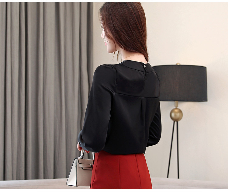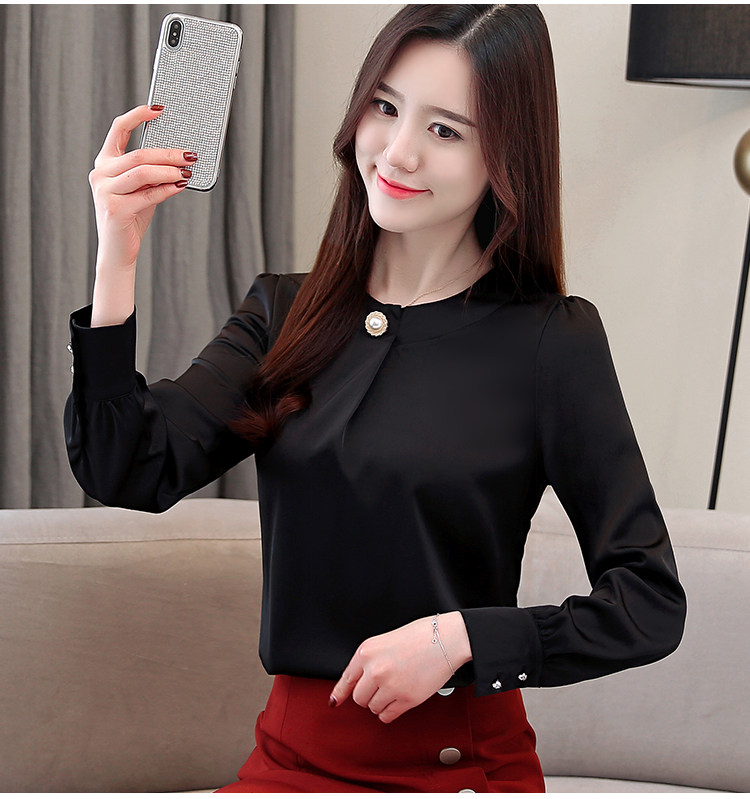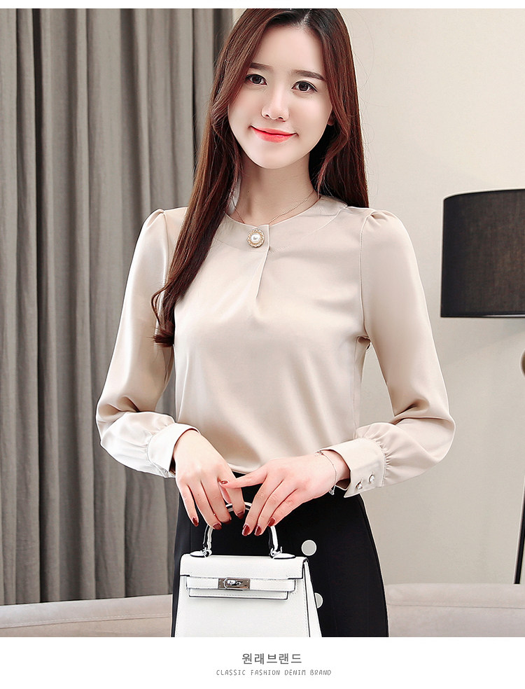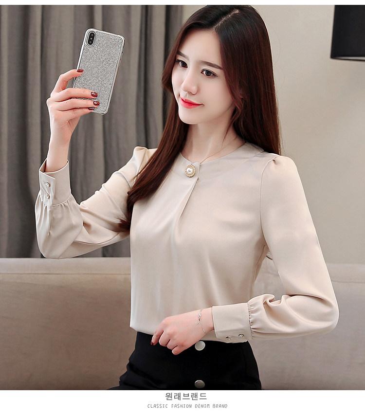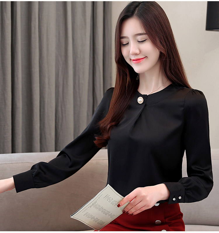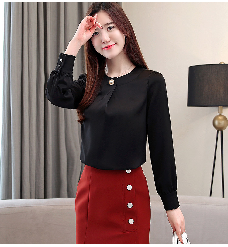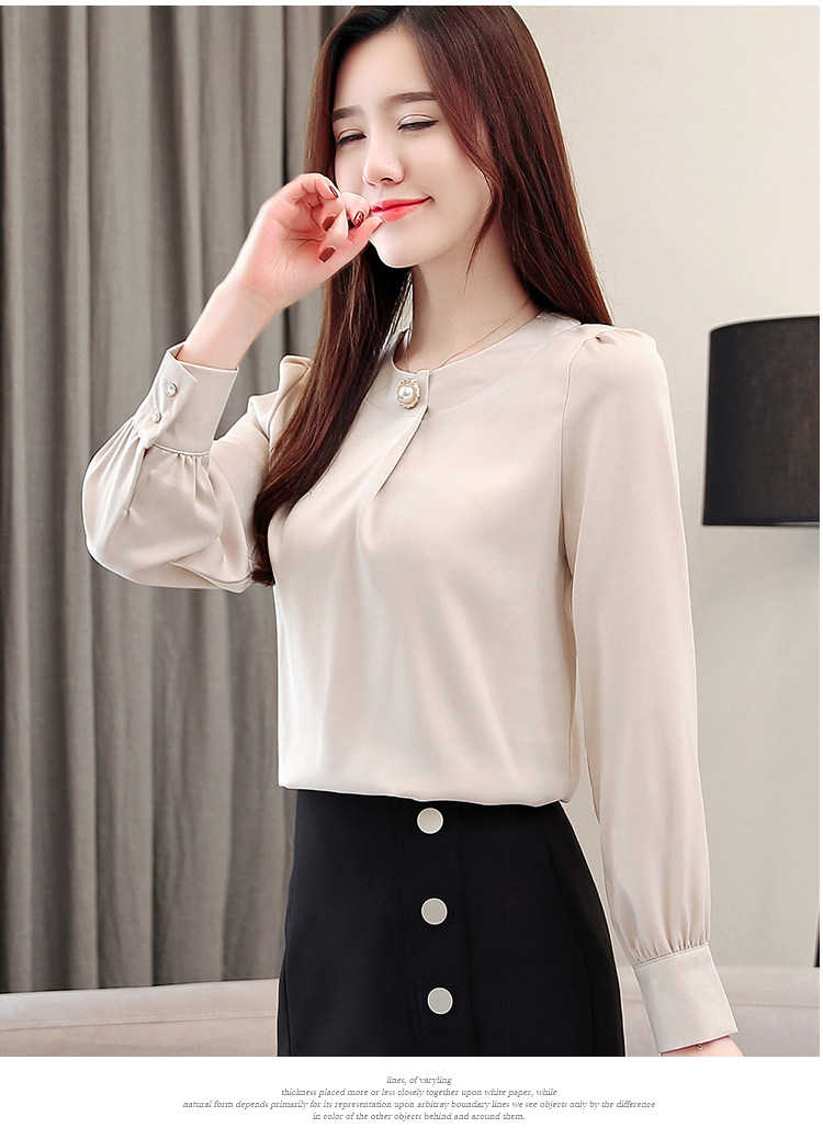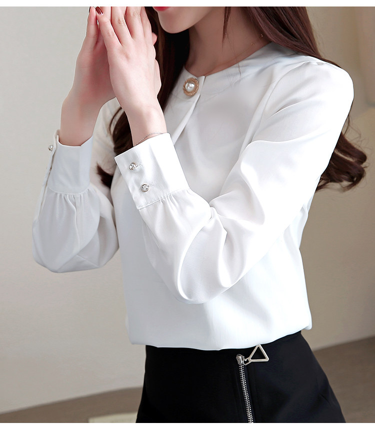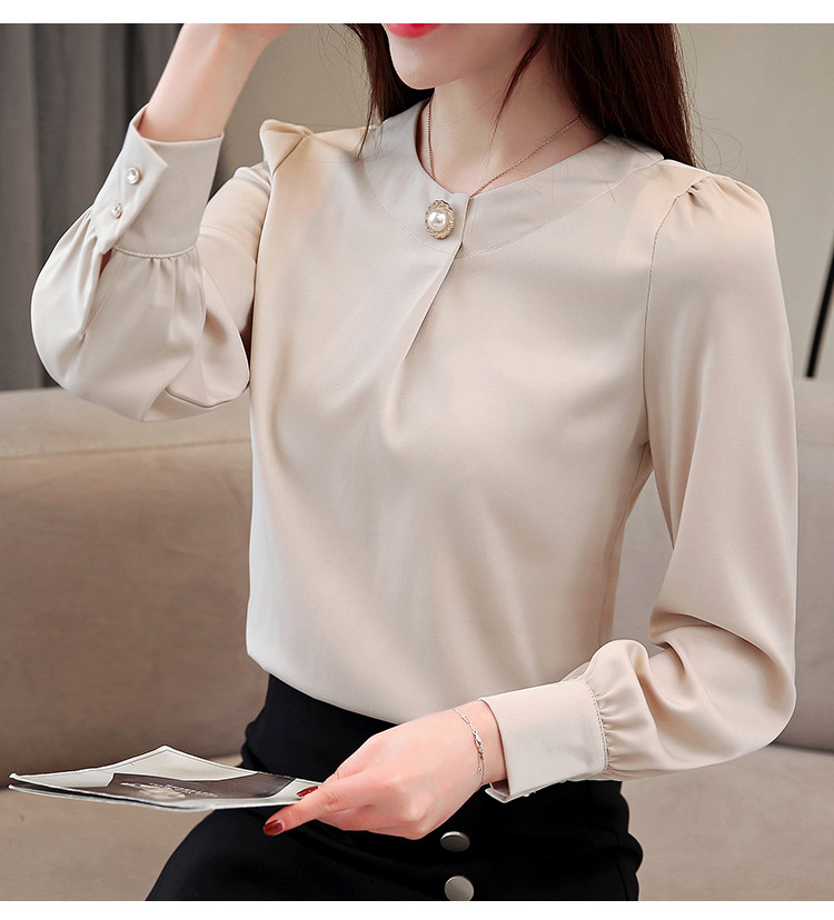 Блузка женская шифоновая однотонная с круглым вырезом и бусинами 2021 50|Блузки| |