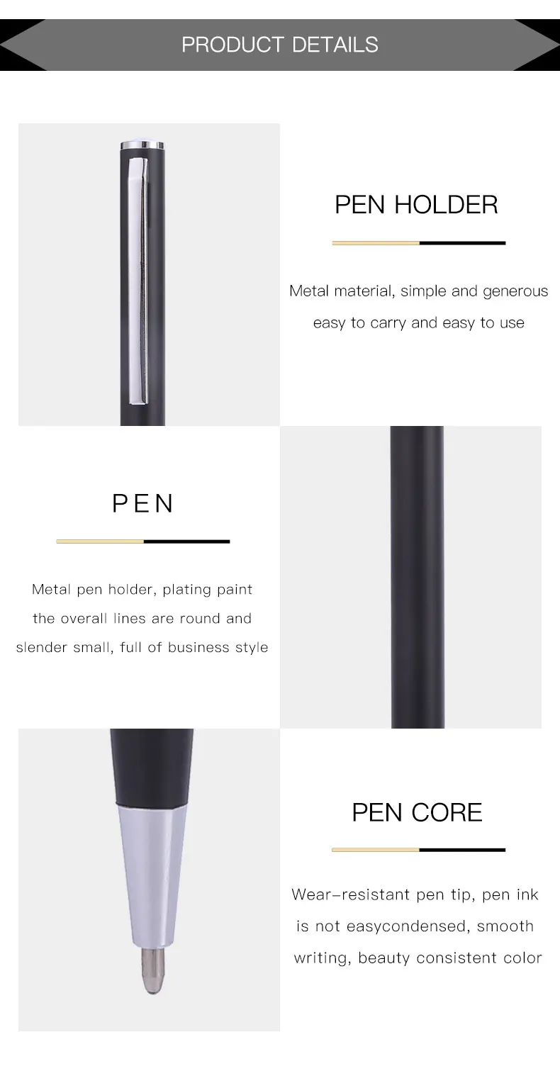 Бренды: Guoyi Номер товара: C33 Материал изделия: металл Длина изделия: 12,83 см Вес одной ручки: 10 г Цвет изделия: сталь/черный 0,7 мм пера Цвет письма: синий и черный