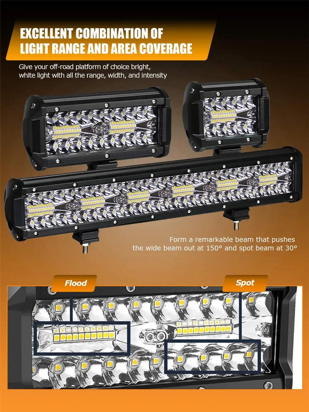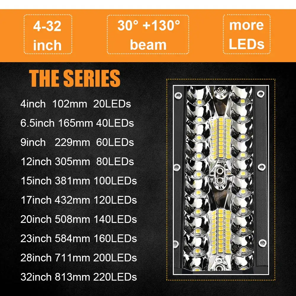 Большой радиатор: помогает светодиодам оставаться прохладнее и ярче Резиновое уплотнение: литое под заказ уплотнение обеспечивает 100% водонепроницаемость Максимальная надежность: конструкция гарантирует, что dmage к части светильник не вызовет полного отказа Длительный срок службы: 100 люмен на ватт светодиодов с более чем 50000 часов срока службы Класс доступа IP67: защищен от полного, непрерывного погружения в воду, а также струй воды высокого давления Использует меньшую мощность: запатентованный Гибридный отражатель обеспечивает 94% эффективность Небьющиеся линзы: линза из поликарбоната Lexan небьющаяся, устойчивая к истиранию и оптически чистая Герметичный светильник: болты помещаются каждые 6 см для герметичного корпуса. 4 - 44 дюйма комбо луч, 130 150 ° луч + 30 ° сфокусированный луч