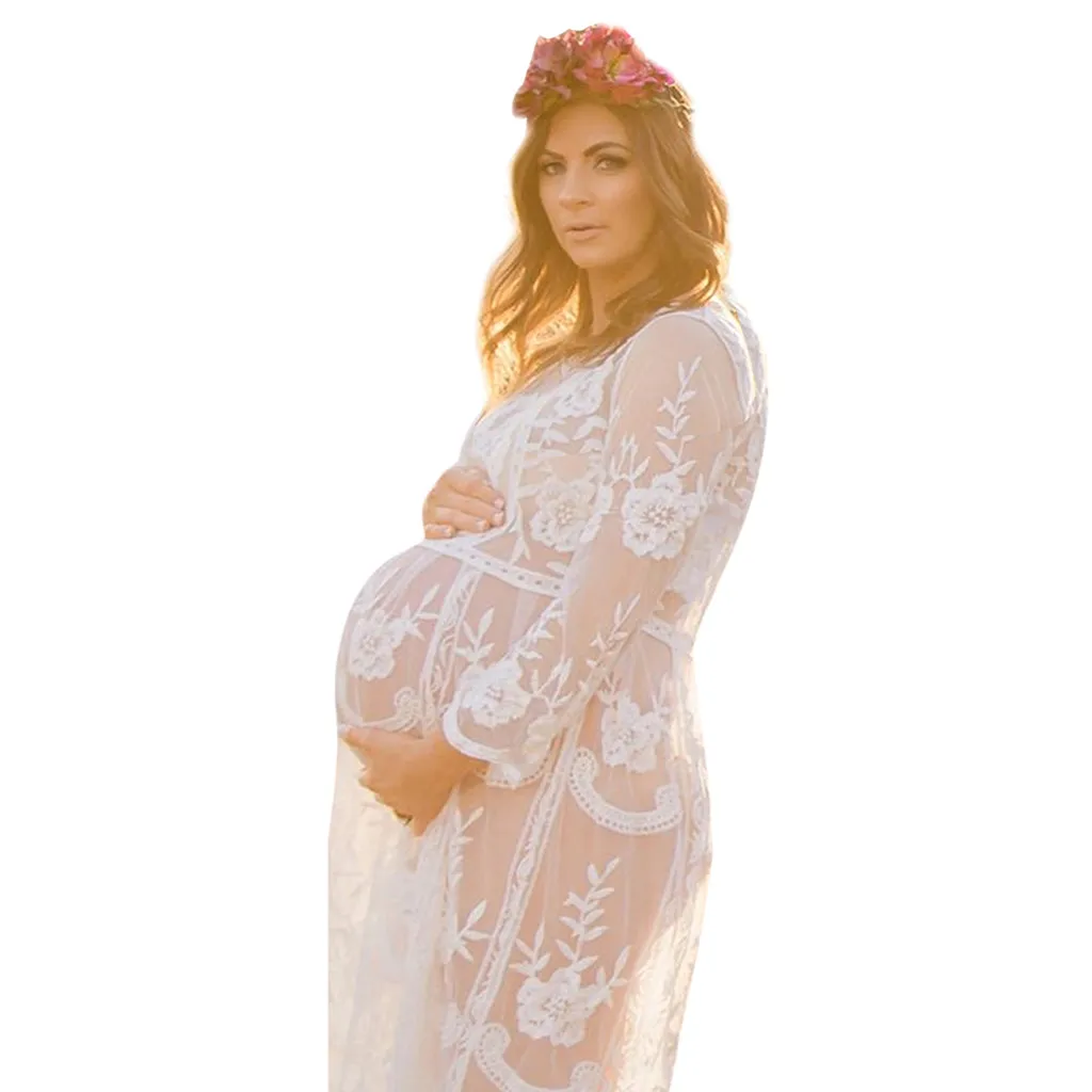 Женское кружевное платье с длинными рукавами для беременных; Одежда для беременных