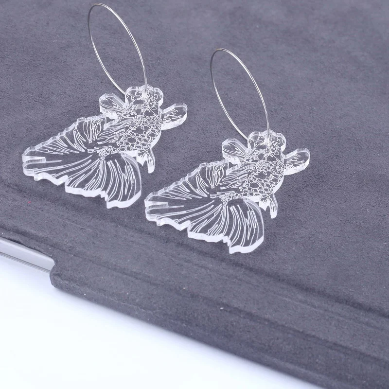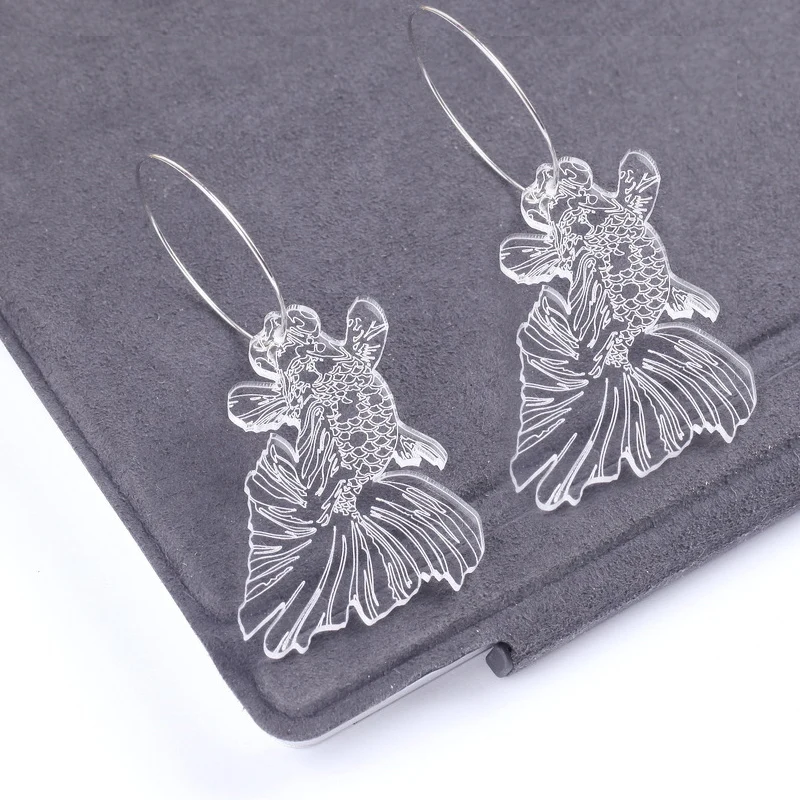 Модные серьги-кольца в китайском стиле с прозрачным диском, резные с кранами, женские акриловые серьги с волнистыми облаками, ювелирные изделия E18192