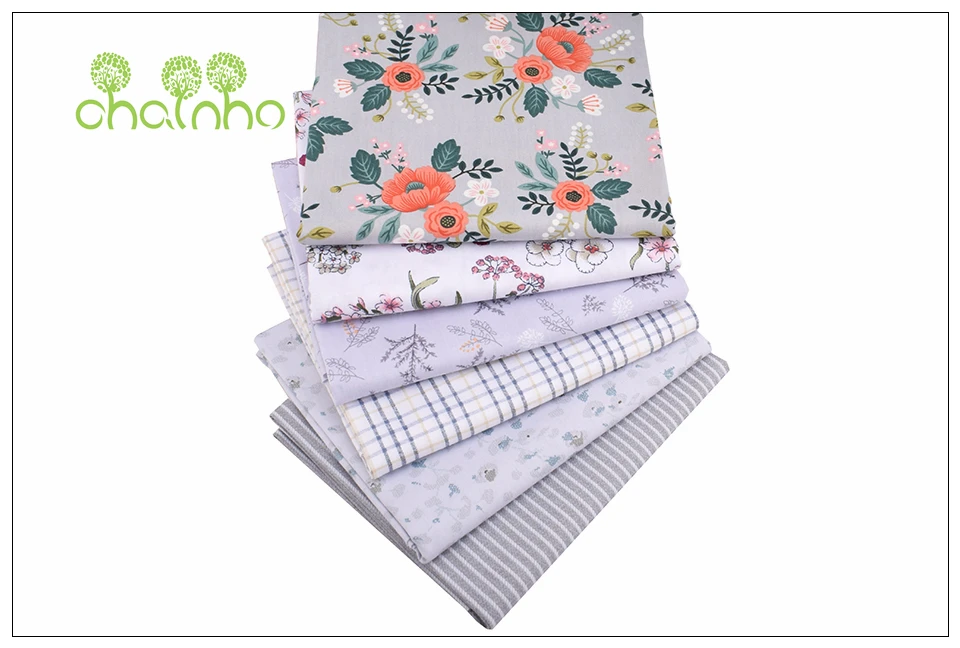 Chainho,6 шт./лот, серия серого цвета, хлопковая ткань из саржи с принтом, Лоскутная Ткань, сделай сам, шитье и стеганое одеяло, материал для малышей и детей
