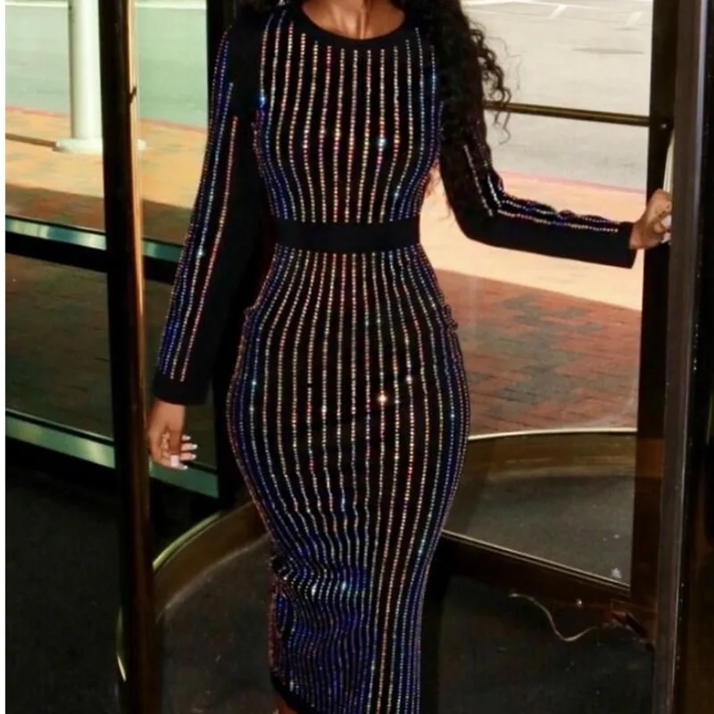 Женское платье с блестками, осеннее платье с длинным рукавом и круглым вырезом, облегающее сексуальное облегающее платье, вечерние платья, хит продаж, оптовая продажа, Прямая поставка