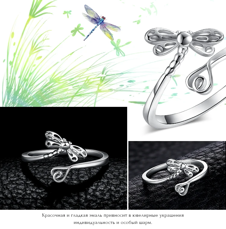 Элегантное кольцо из стерлингового серебра со стрекозой, украшенное дизайном в видесердца в конце хвоста. Обязательно загляните в этот модный образ.
