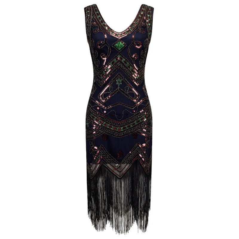 1. Элегантный дизайн-с двойным v-образным вырезом, изысканным рисунком розы и милым дизайном бахромы, женское платье Gatsby сделает вас привлекательным и элегантным.