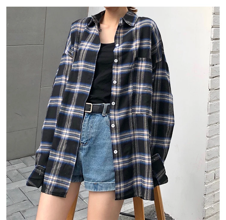 Женская свободная рубашка-бойфренд, красная рубашка в клетку с длинным рукавом, 1267, весна 2019
