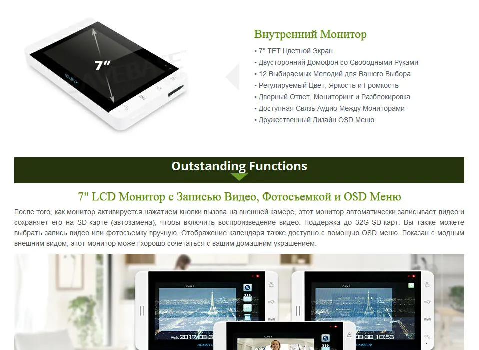 Видеодомофон HomeEye 10 дюймов система домашнего контроля доступа и RFID кардридер 1200TVL