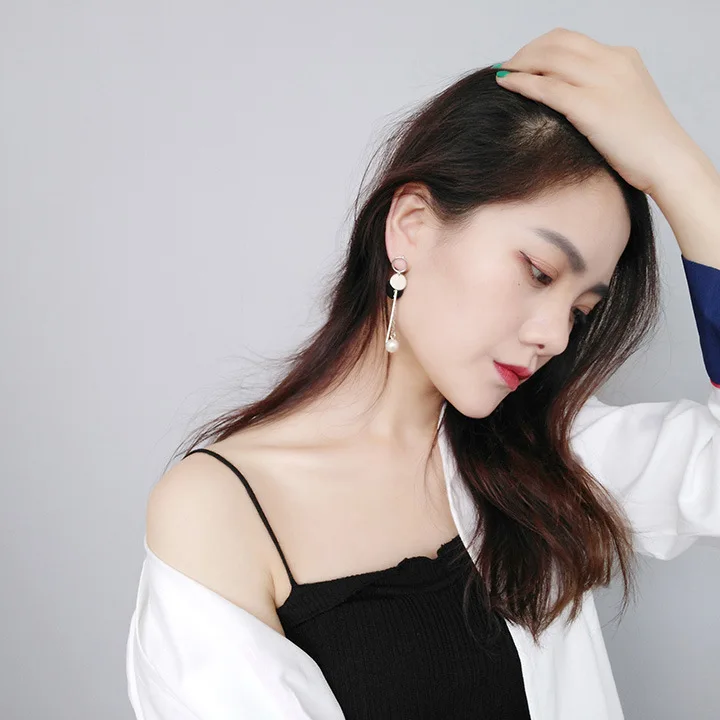 BRAVEKISS круглые Кристальные Подвесные серьги длинные капли на цепочке женские с