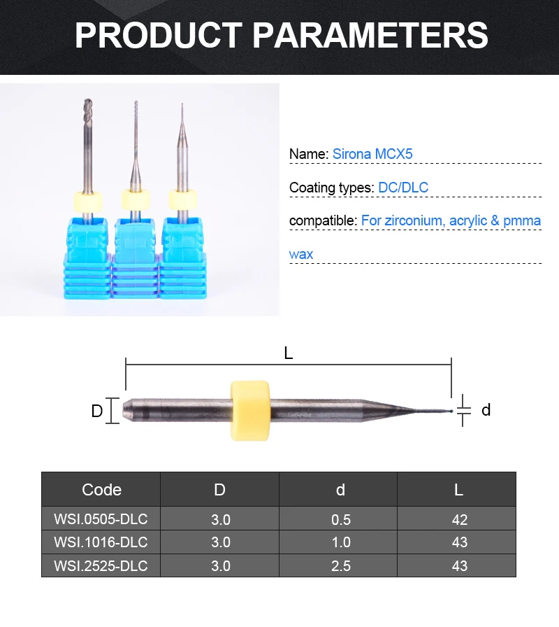 UCHEER 1 шт. Sirona MCX5 фрезерный БУР с DLC/DC пальто Cam фрезерование около 150 единиц циркония PMMA воск стоматологический