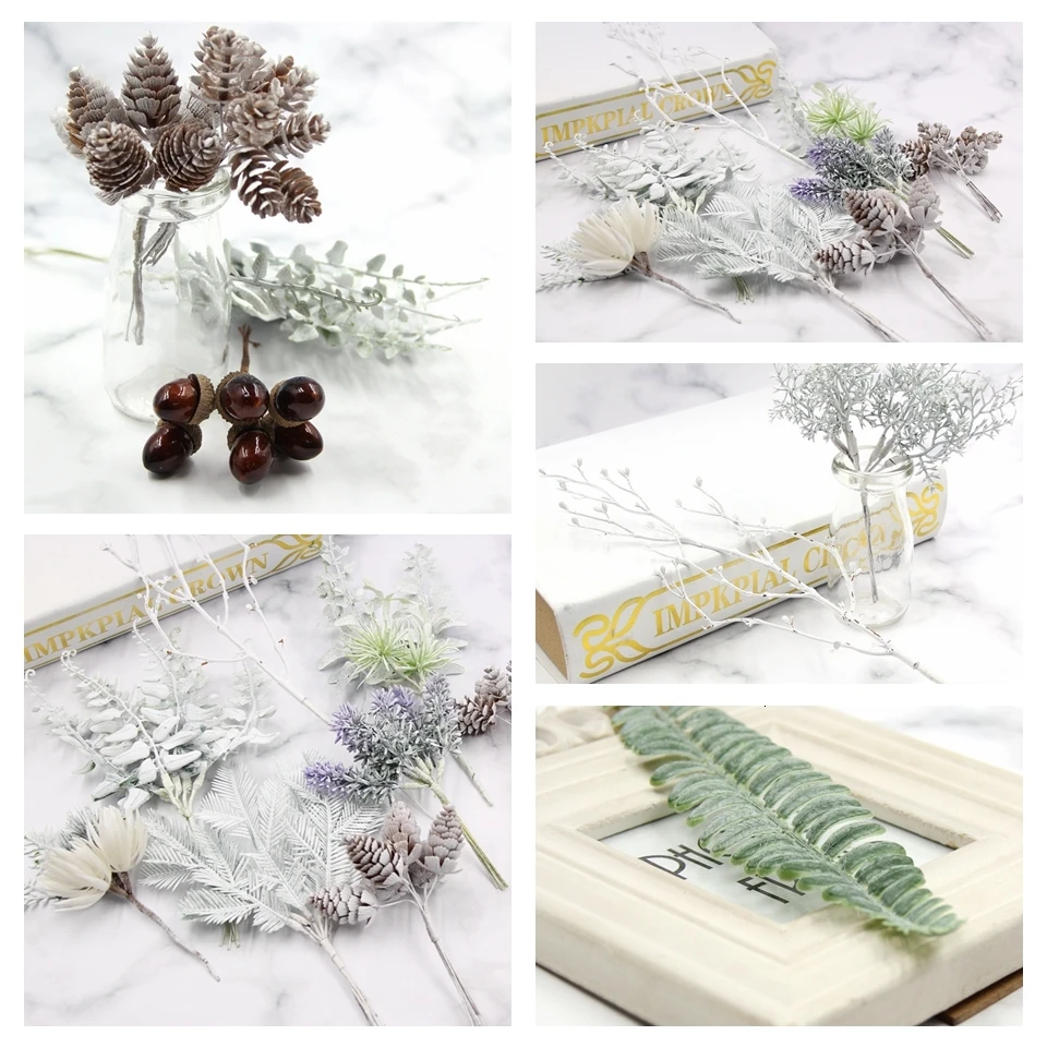 1 комплект, искусственные цветы, сосновые растения, трава, цветок для свадебной вечеринки, сделай сам, скрапбук, искусственные цветы, Рождественское украшение