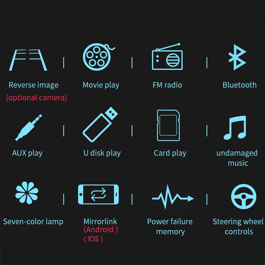 Основная функция: MP5, USB/TF интерфейс, FM, Bluetooth, вход задней камеры, Aux In