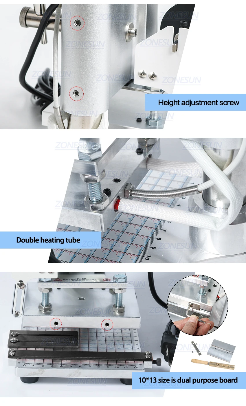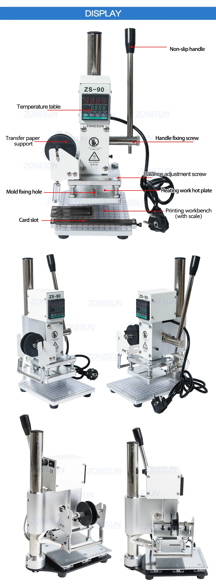 Удивительно особенности ZS-90 1) цифровой контроль температуры: цифровой дисплей температуры, "интуитивное". Температуру с точностью до одного знака после запятой практически без ошибок. Позволяет быстро выводить тепло, нажмите на кнопку, чтобы установить температуру. 2) цифровой дисплей внутреннюю структуру электрическая коробка: Температура управления и схема интеграции, интенсивность отказов небольшие, меньше проводов, и более высокий уровень безопасности. 3) Температура Контролируемая зонда: винт-Тип регулятор температуры с термопарным, хвост может быть включены, нержавеющая сталь экранированный хвоста. Не боится изгиб, точные и прочные. 4) с помощью двойной тепловой трубы, более быстрого нагрева, длительный срок службы и может достичь постоянная температура эффект. 5) трансферная бумага кронштейн: это может быть положить на кронштейне непосредственно с помощью горячего тиснения бумаги, и горячего тиснения происходит быстрее, более удобно и идеально.