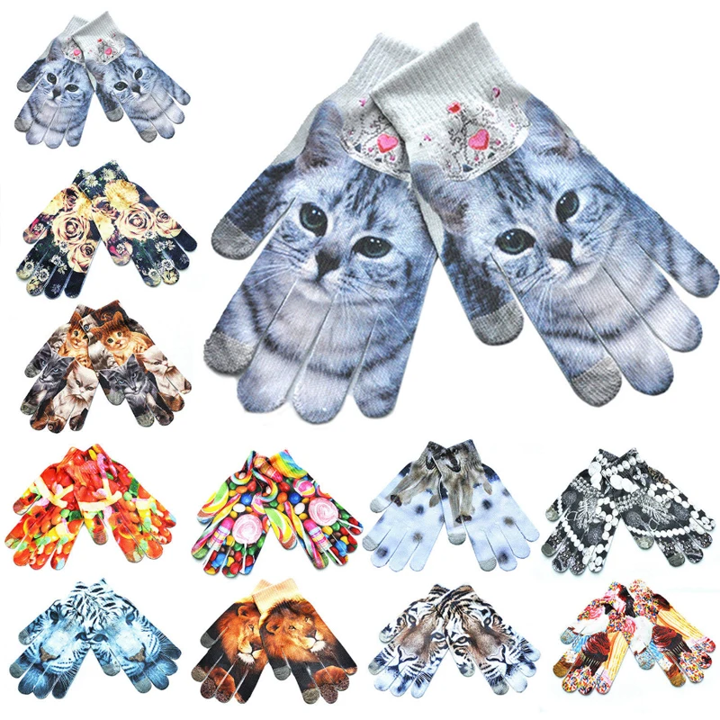 1 пара, новые мужские теплые сенсорные перчатки, повседневные, с цифровой росписью, зимние, вязаные, женские, с 3D принтом, перчатки с сенсорным экраном, вязаные, разные цвета