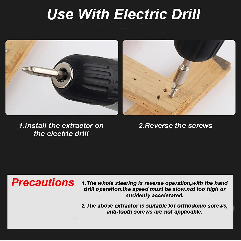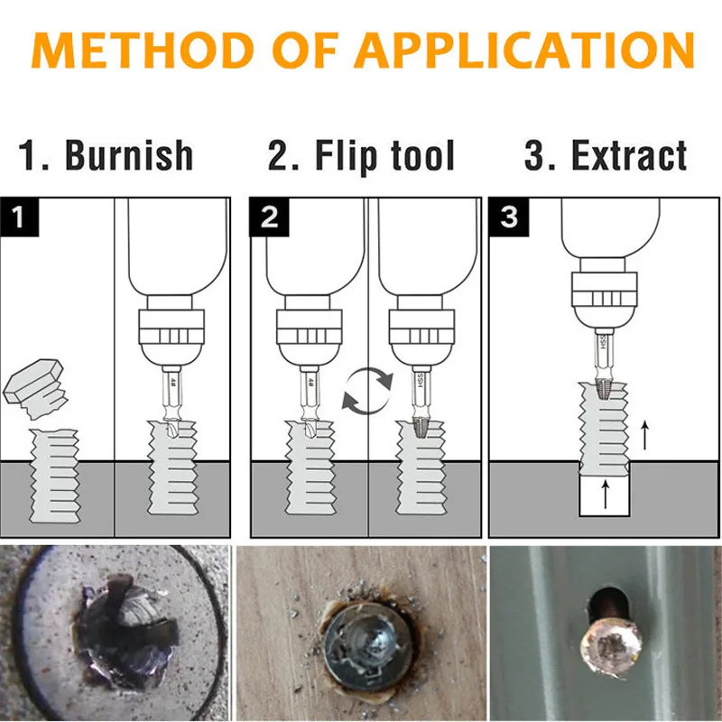 Набор экстракторов, отвечает требованиям различных винтов и размеров болтов. Быстро извлеките ржавые, сломанные винты. Высокая прочность и твердость. Прост в использовании. Прочный и практичный.