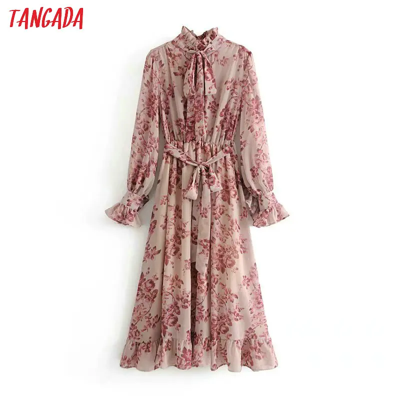 Новинка женское винтажное Кружевное платье миди с круглым вырезом и принтом