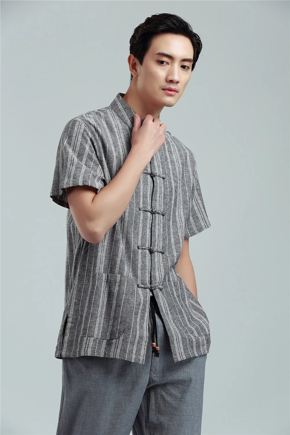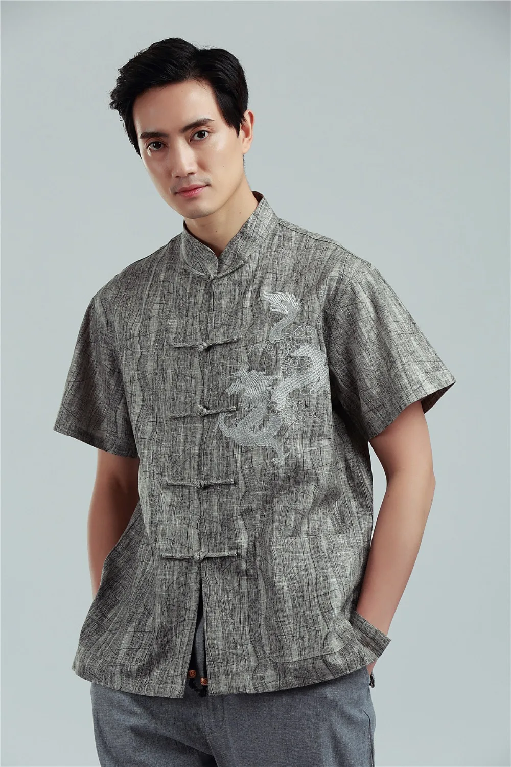 Китайский костюм кимоно Q698 для мужчин рубашка в традиционном китайском стиле с