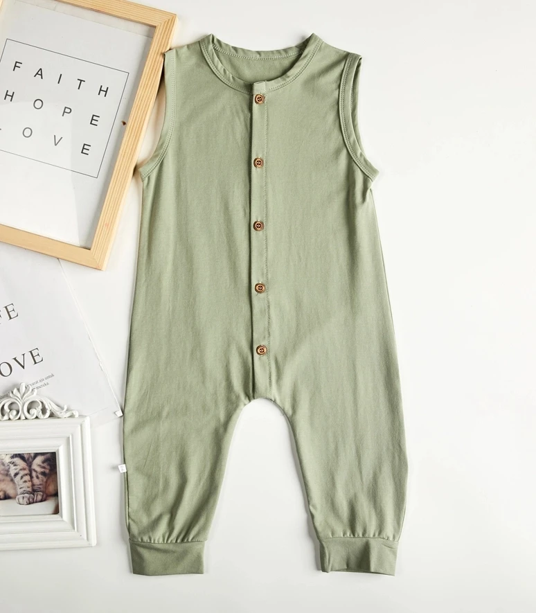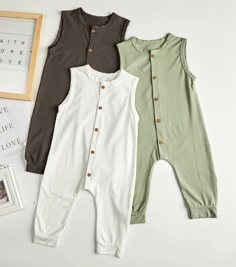Одежда для малышей; Комбинезоны без рукавов; Простой сиамский детский однотонный комбинезон