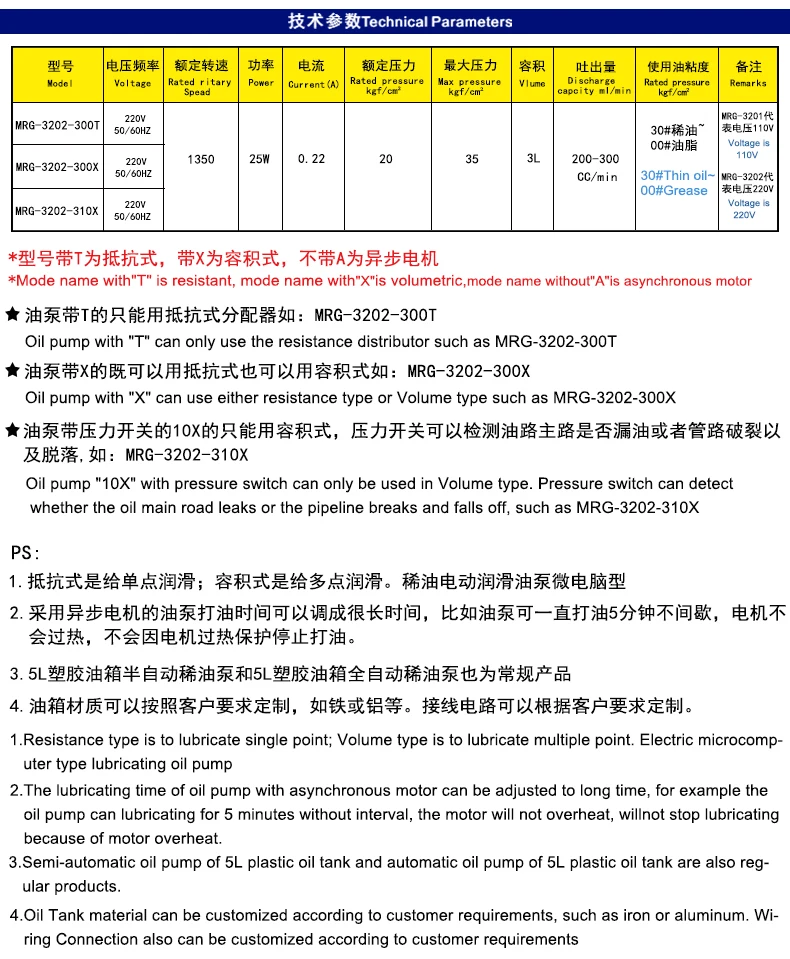 2. С выходом масла 200 ~ 300CC/min Емкость масляного бака имеет 2, 3 и 4 литра и т. Д.