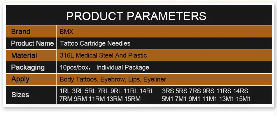 Тип изделия: игла для тату-картриджа Материал: АБС-пластик Дополнительный типа: 1RL/3RL/5RL/7RL/9RL/11RL/7RM/9RM/11RM/13RM/15RM/5M1/7M1/9M1/11M1/13M1/15M1/3RS/5RS/7RS/9RS