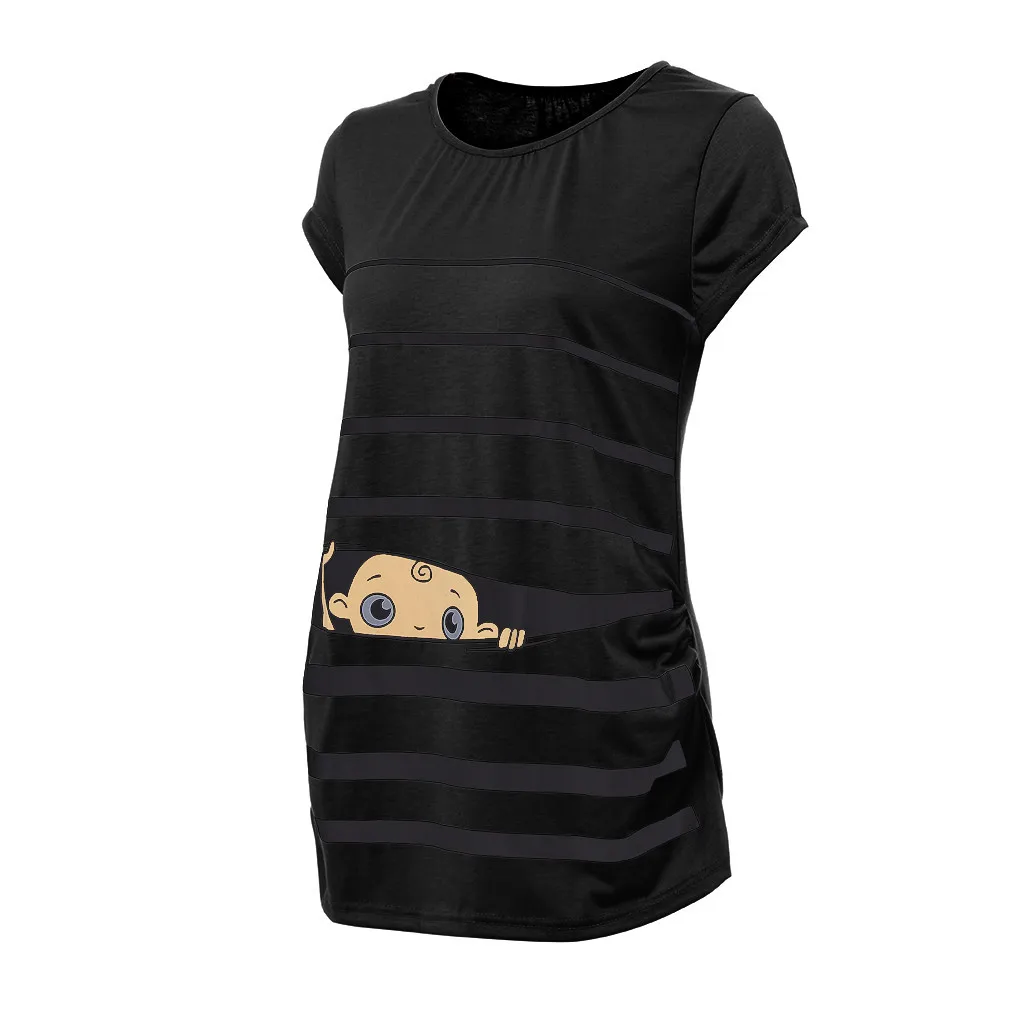 Беременности и родам милый детский комбинезон с рисунком с принтом в полоску; Футболка с короткими рукавами для беременных Топы