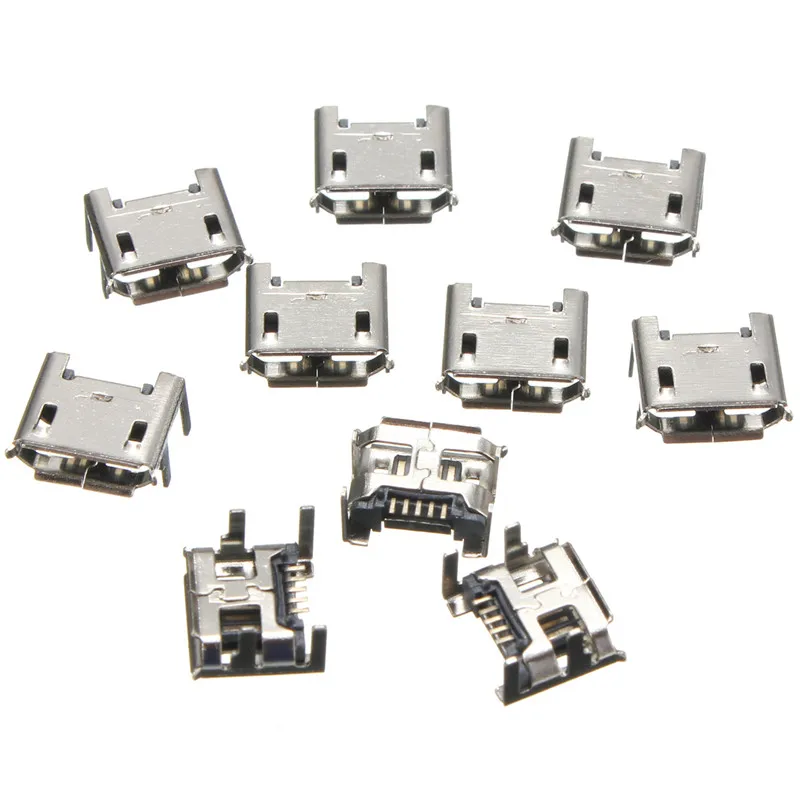 10 x гнездо Micro USB Type B, 4 вертикальные ножки, фиксированные