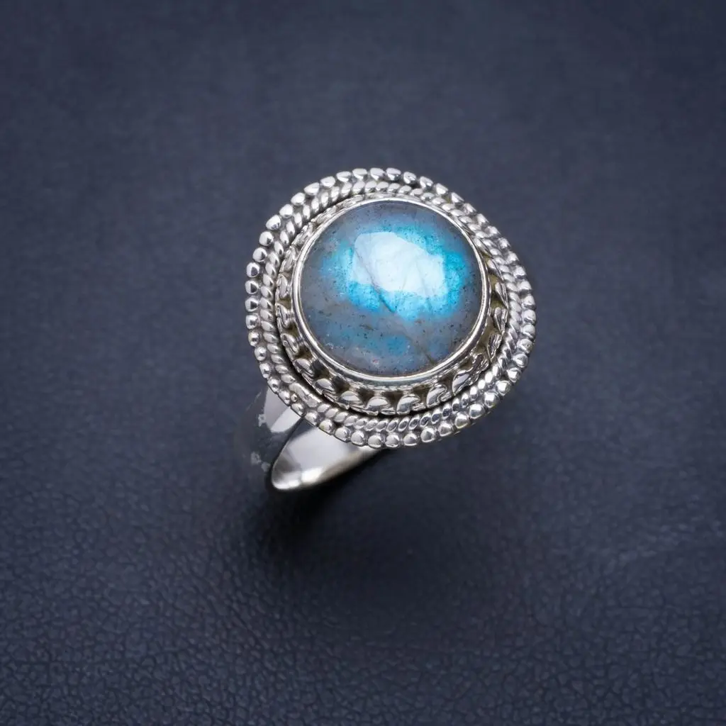 Натуральный голубой огненный Лабрадорит ручной работы уникальное 925 пробы Серебряное кольцо 8,5; A1149