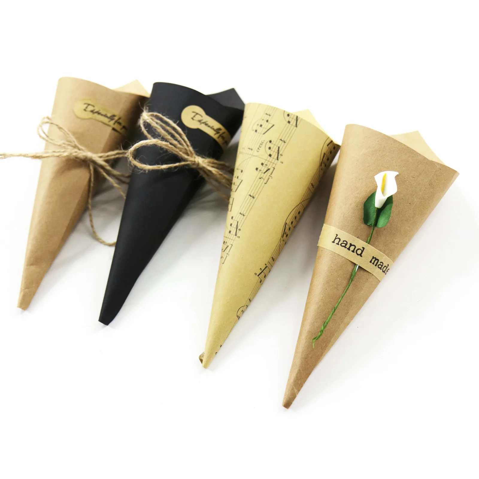Крафт-бумага квадратная, легко закатывается и изготавливается в виде конуса, который может содержать мини-букет, конфеты, 2 Конфеты Ферреро и т. Д.
