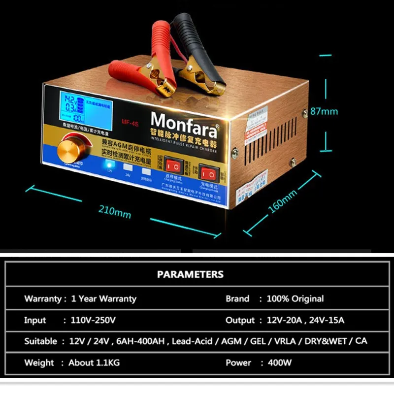 -Применение: подходит для 6-400AH автомобилей и аккумуляторные батареи для двигателя