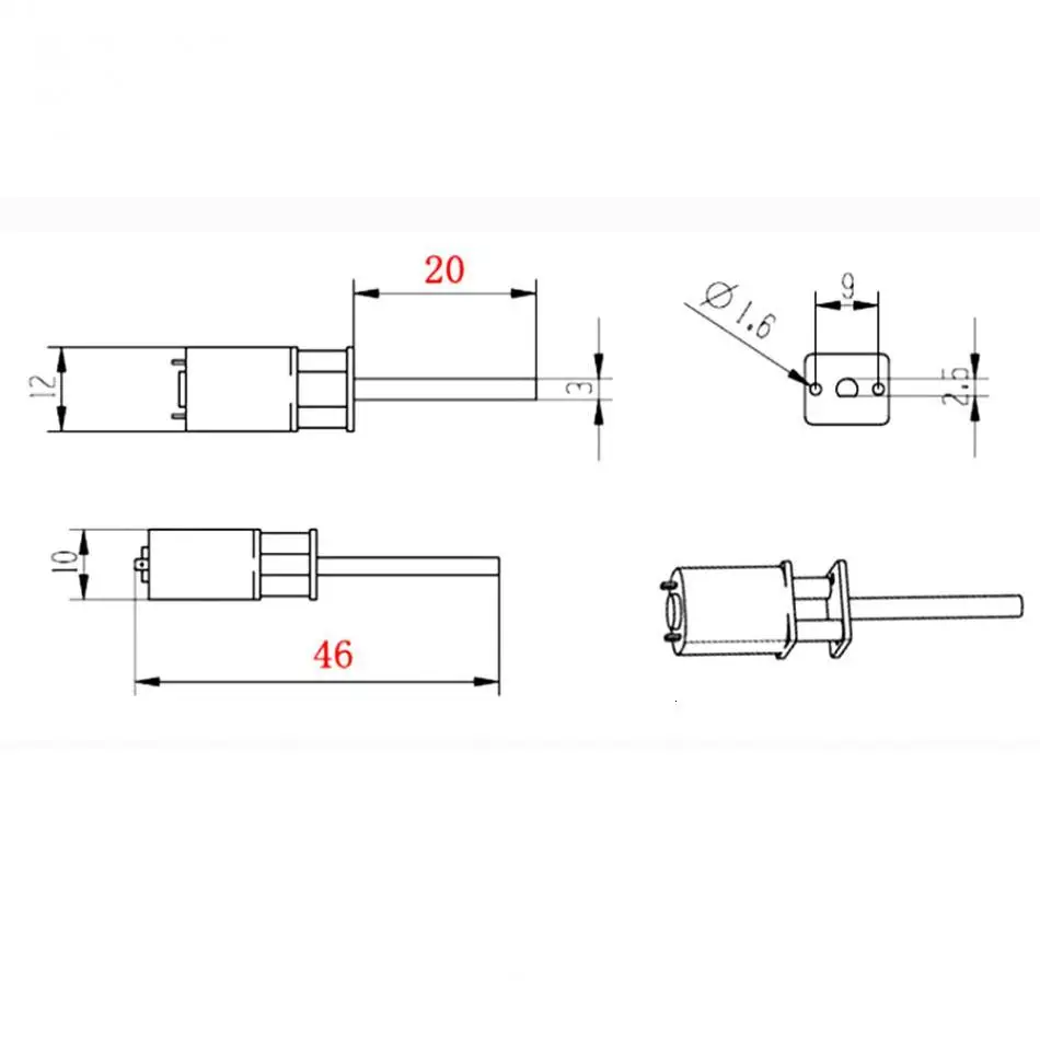 Диаметр выходного вала: 3 мм/0,12 дюйма