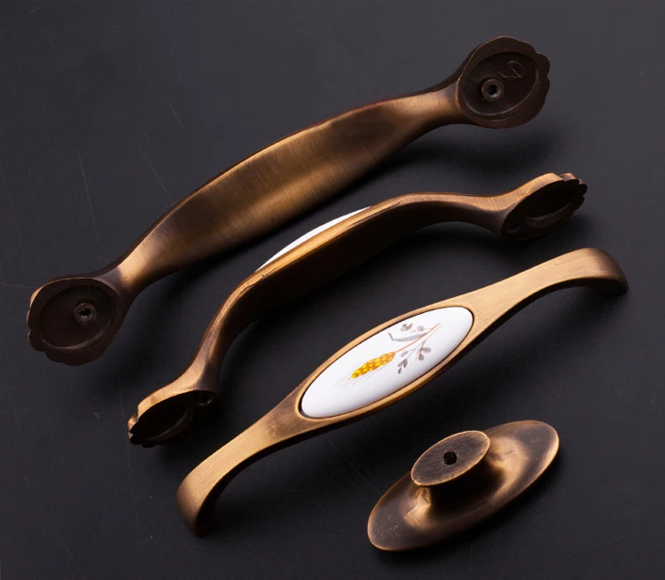 Пшеничная керамическая ручка, Европейский кухонный шкаф, ручки шкафа, антикварные бронзовые для выдвижных шкафчиков