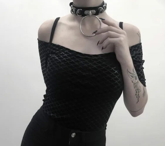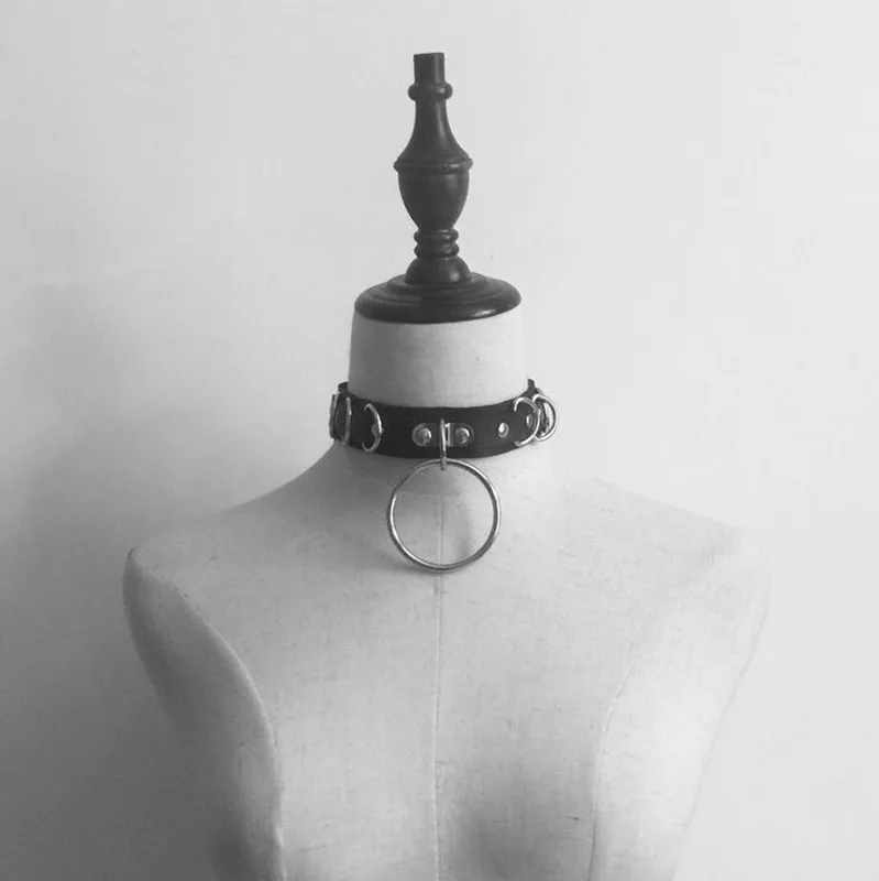 Готический панк ошейник чокер Круглый Круг заклепки женщин ПУ кожа красочные