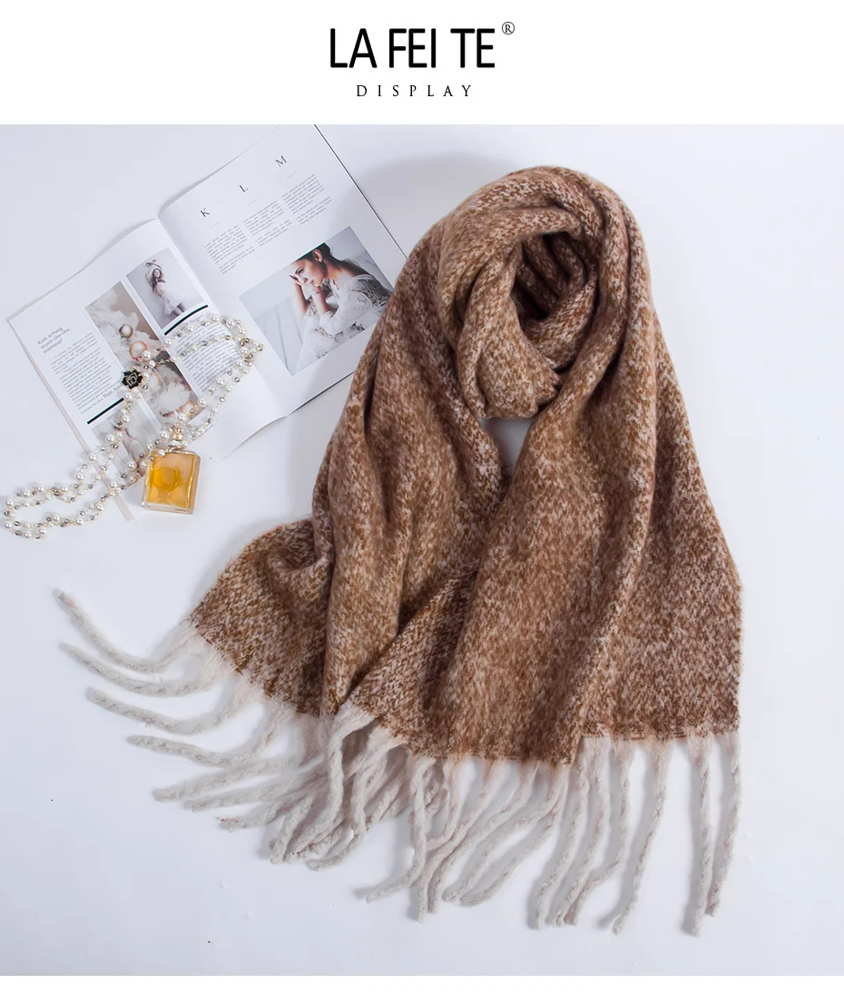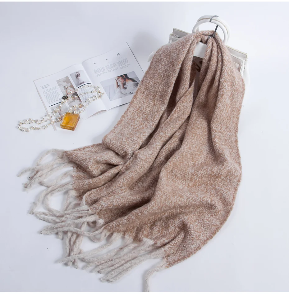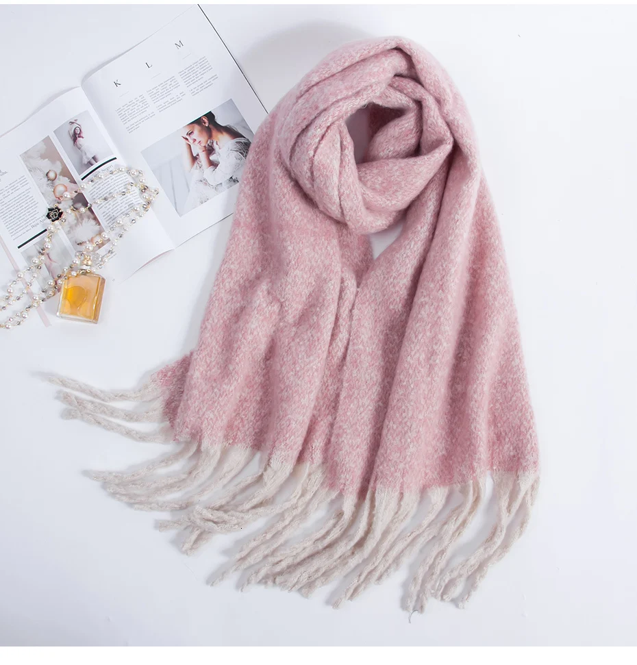 Женский вязаный шарф из натурального Лисьего меха разноцветный теплый зимний с