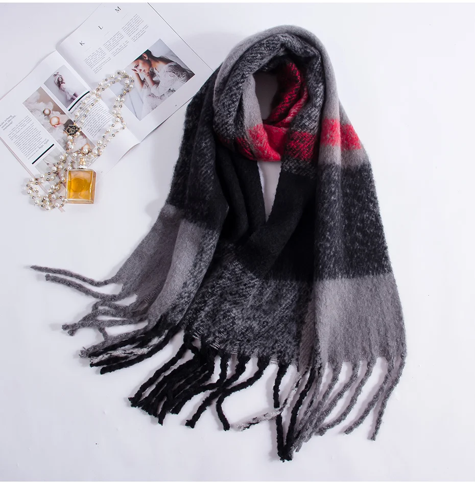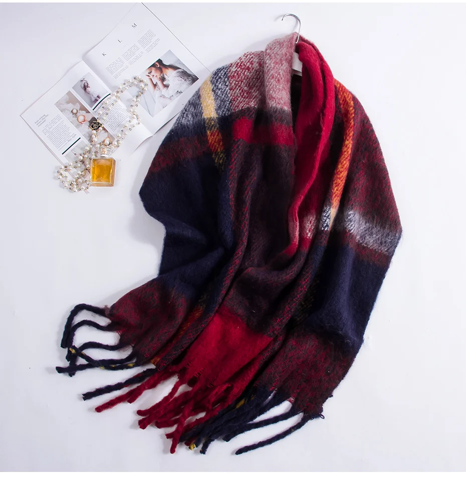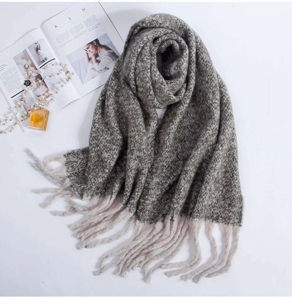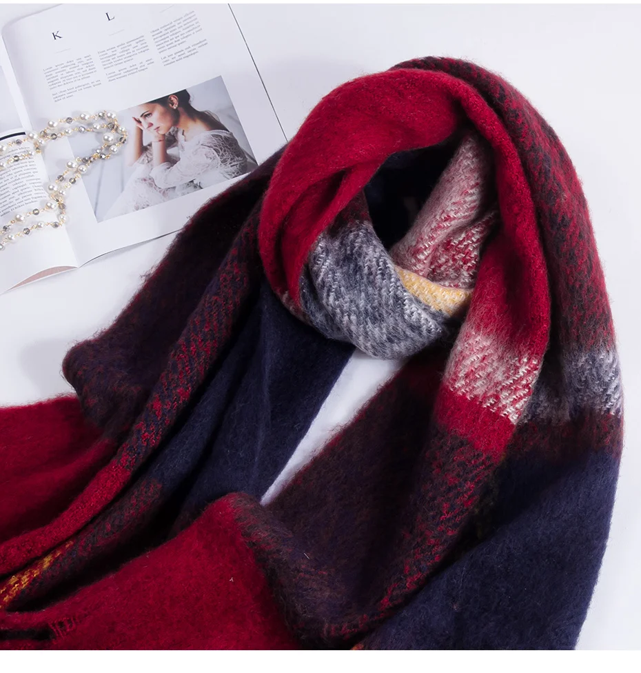 Женский вязаный шарф из натурального Лисьего меха разноцветный теплый зимний с