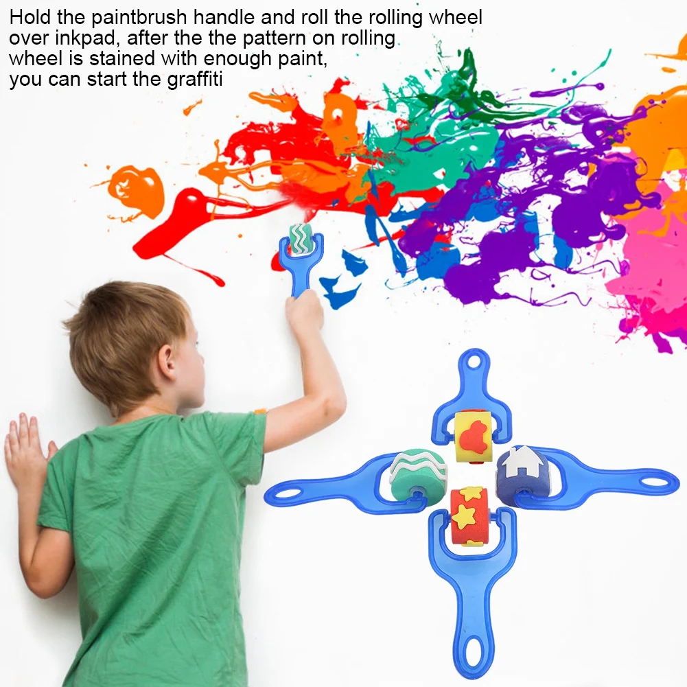 5 шт./компл. детские игрушки для рисования Губка кисти инструменты деревянная ручка печать губка кисти для рисования граффити кисти инструменты