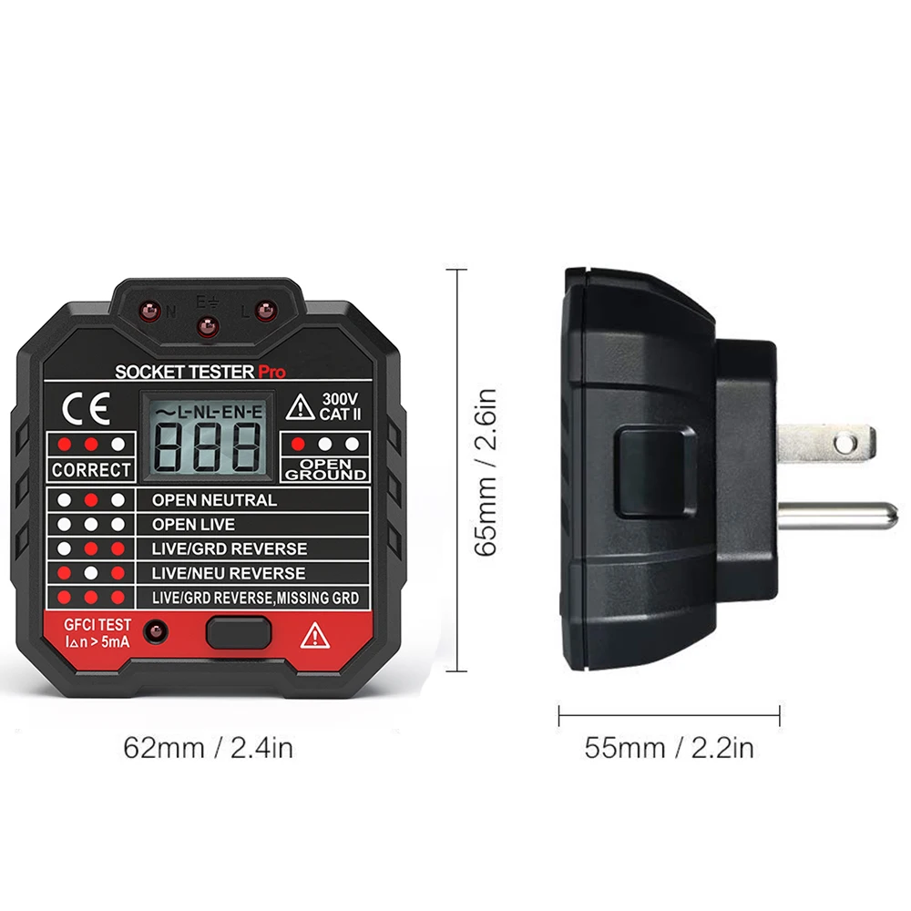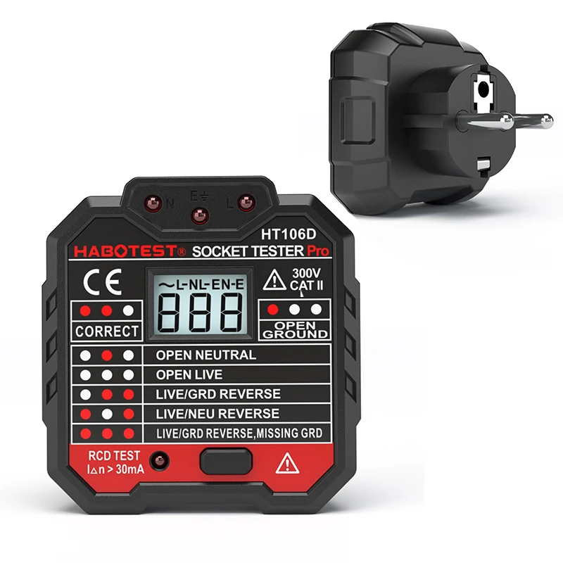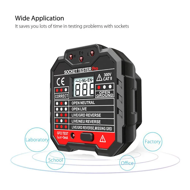 1. Мини Портативный дизайн, легко носить с собой и прост в использовании. 2. Тест RCD (или GFCI). 3. Тест на напряжение (с ЖК-дисплеем). 4. Может быстро и точно определить состояние проводки розетки. 5. Он проверяет вашу систему защиты для обеспечения Бытовой электрической безопасности Широко используется в школе, лаборатории, фабрике и других социальных областях.
