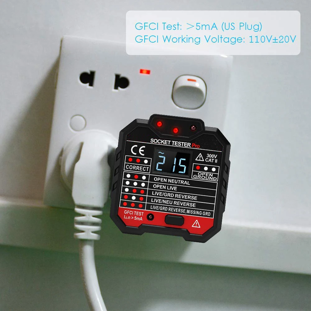 NCV Ручка Тип детектор напряжения гнездо тест er ЖК-дисплей Напряжение ЕС/США штепсельная вилка детектор заземления нулевой линии GFCI/RCD тест er