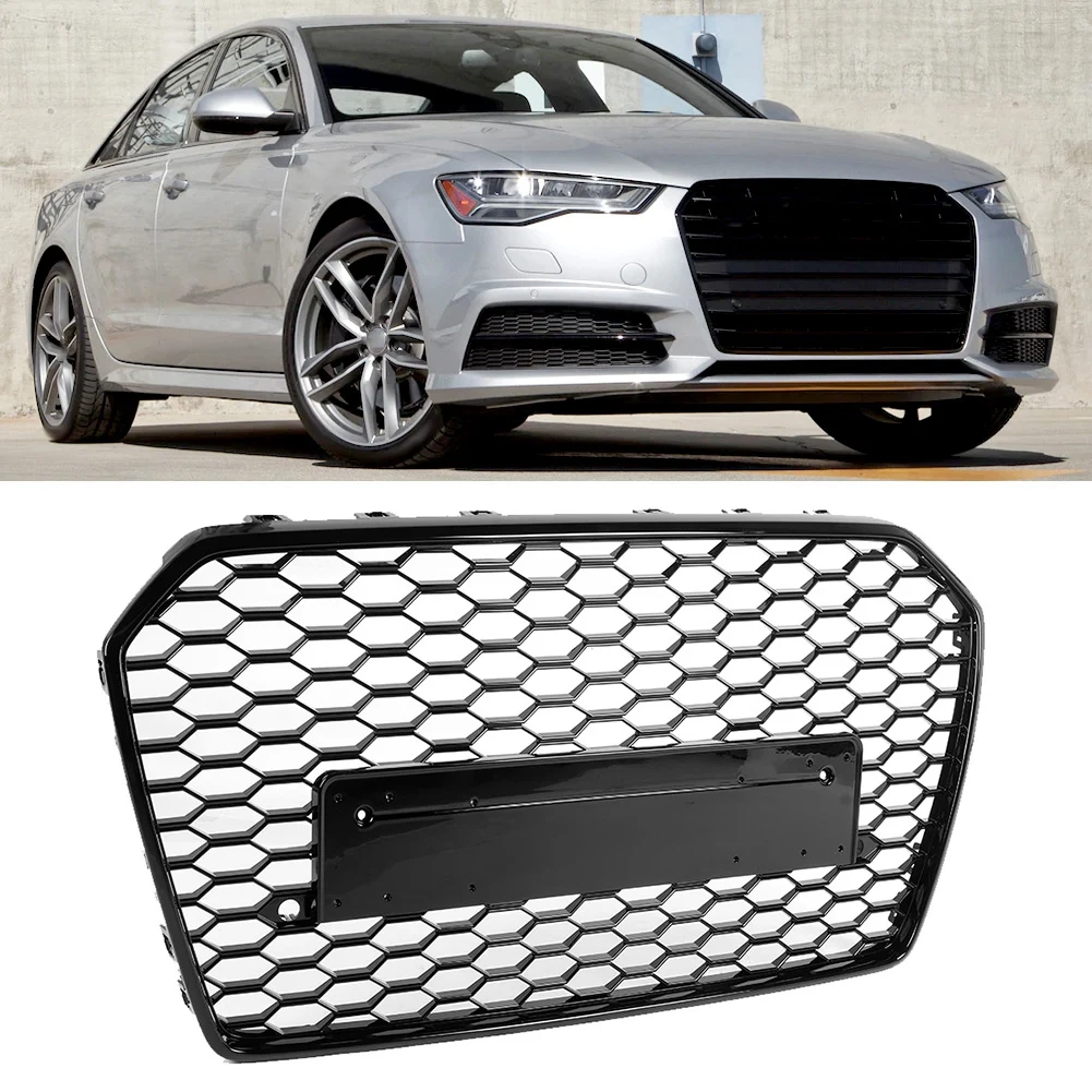 Передняя решетка для гриля с шестигранной сеткой, полностью черная, подходит для RS6, подходит для A6/S6 C7 2016-2018