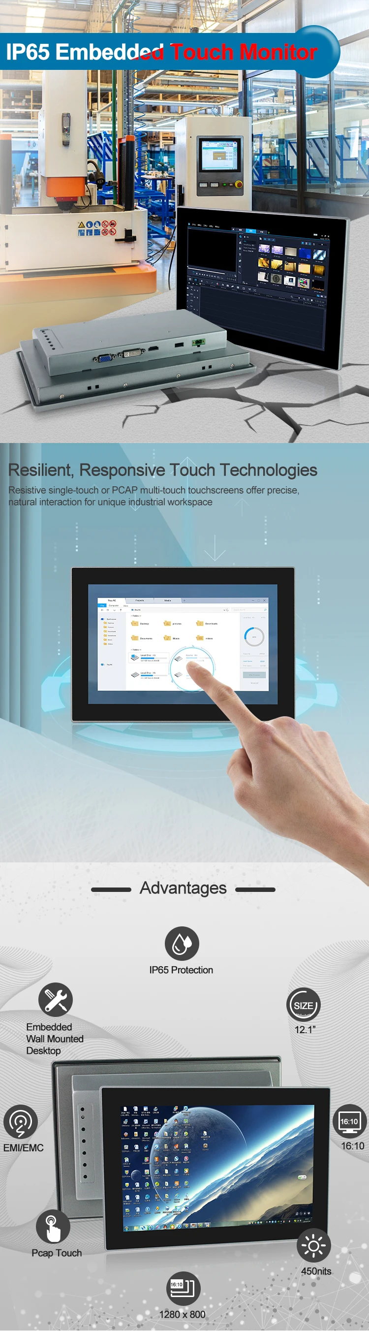 Наша фабрика является интегрированным предприятием с возможностью производства, продажи и системные решения для реализации интегрированных технологических предприятий. У нас есть собственный бренд QYT с серией промышленного контроля компьютерного оборудования от 7 до 42 дюймов.
