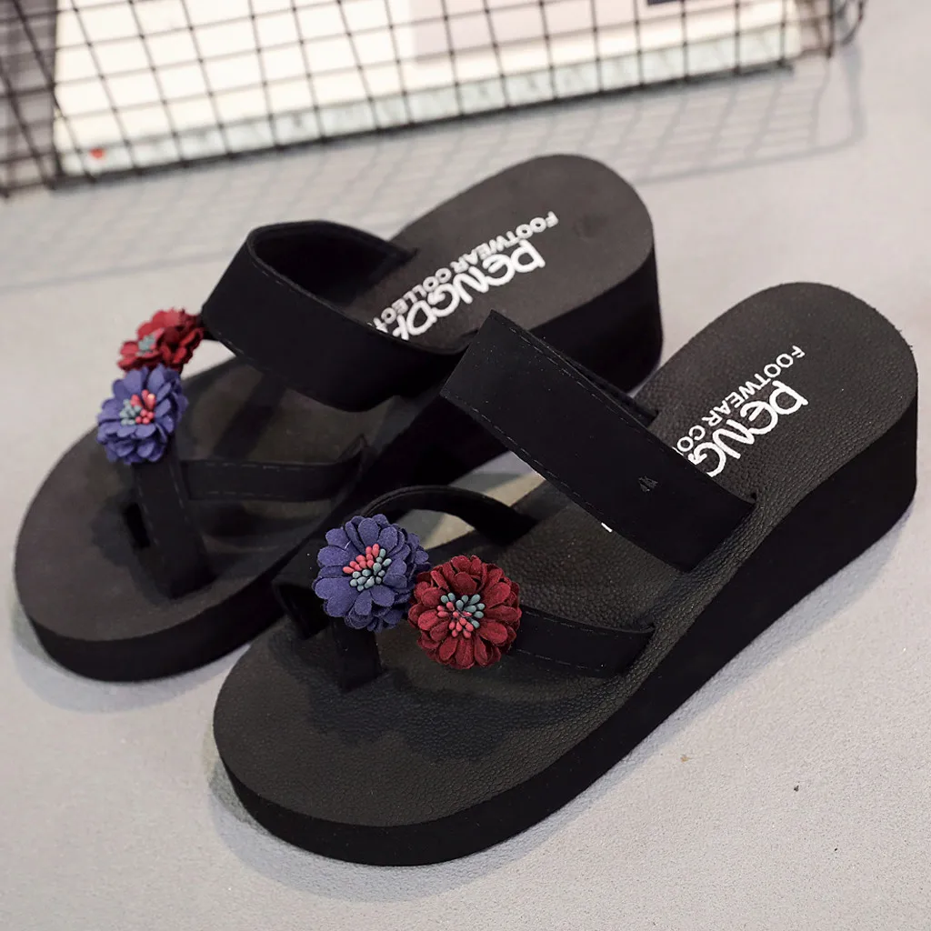 Женские Летние вьетнамки в богемном стиле, Нескользящие шлепанцы на танкетке, пляжная обувь