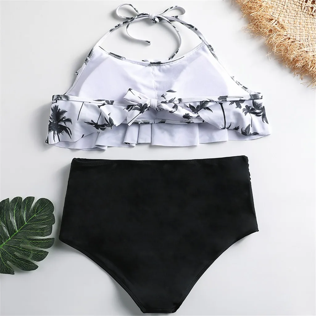 Особенности: воланом, милым рисунком, лямкой на шее, открытой спиной, высокой талией, высоким вырезом, застежкой на галстук.