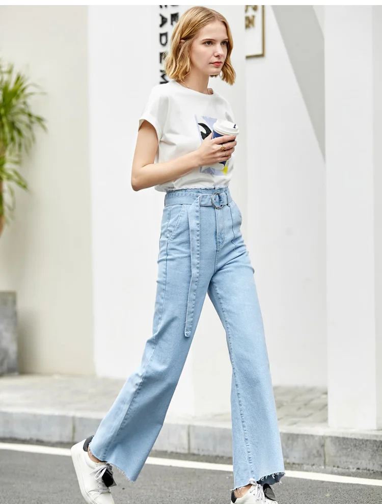 Повседневные женские джинсы с широкими штанинами винтажные брюки вырезами и