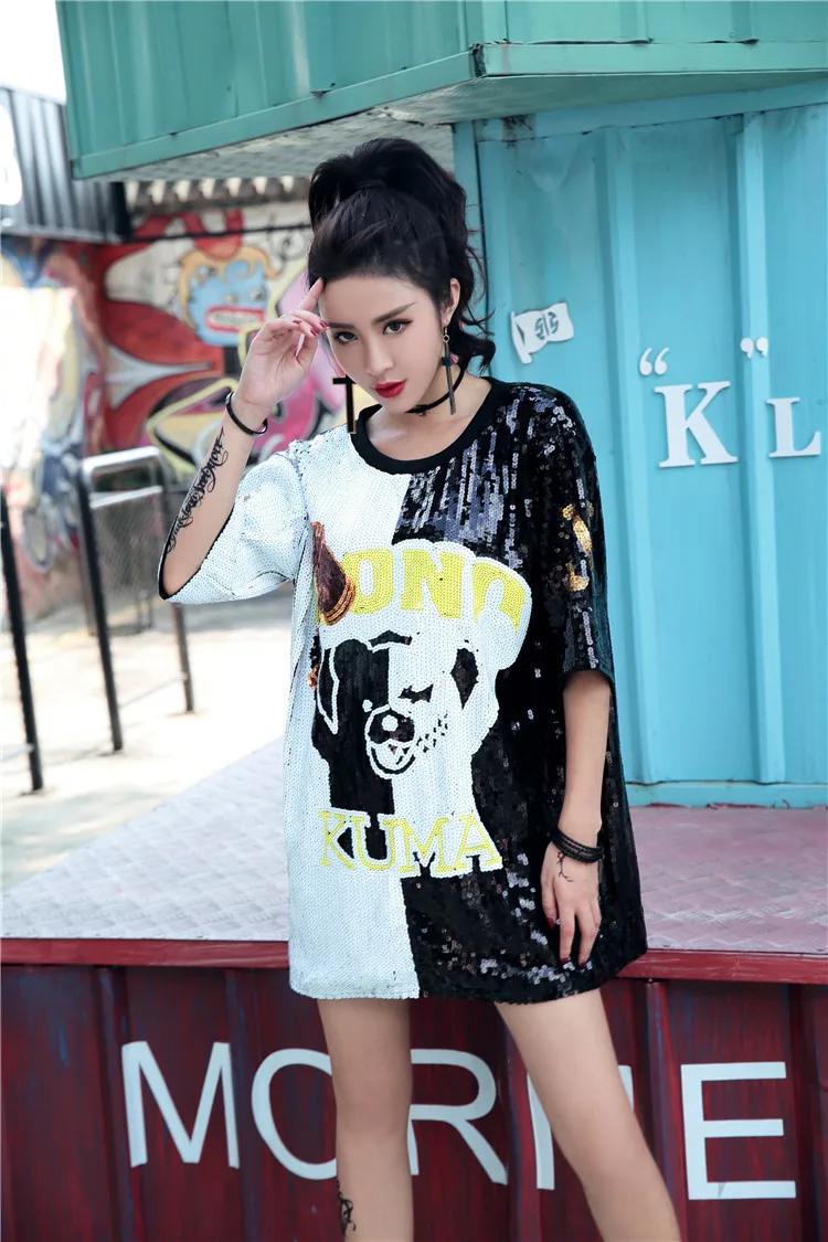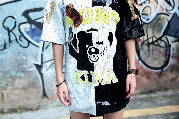 Женское платье-футболка Vefadisa, черное платье с короткими рукавами и рисунком маленького медведя, лето 2020