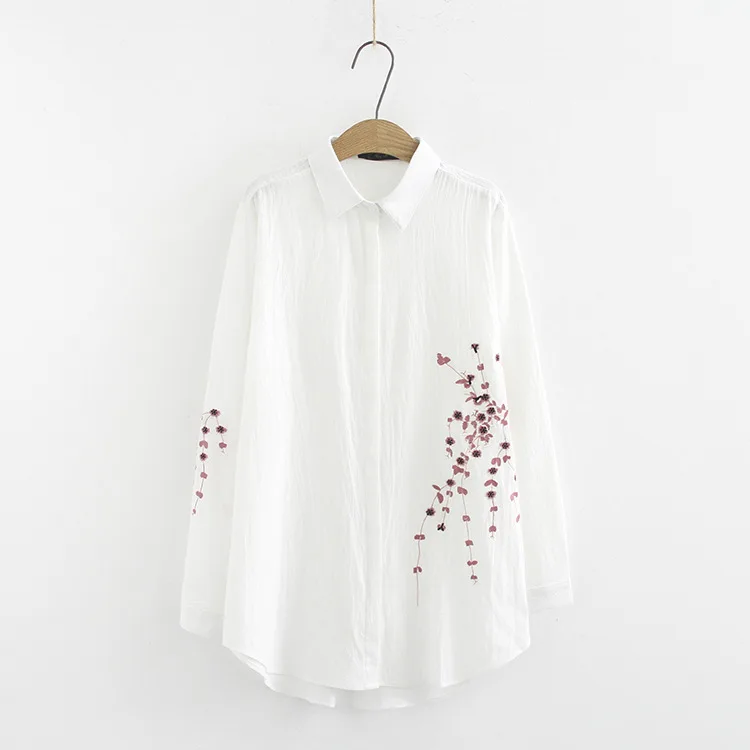 Товар:3 Цвета Цветочные блузки женские рубашки с вышивкой повседневные с длинным рукавом корейского размера плюс блузка рубашка KKFY3032.