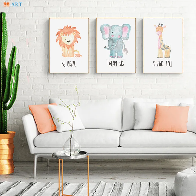 Мультфильм плакат для малышей с принтом с животными Лев Слон для детской комнаты украшения картина дети Украшения в спальню