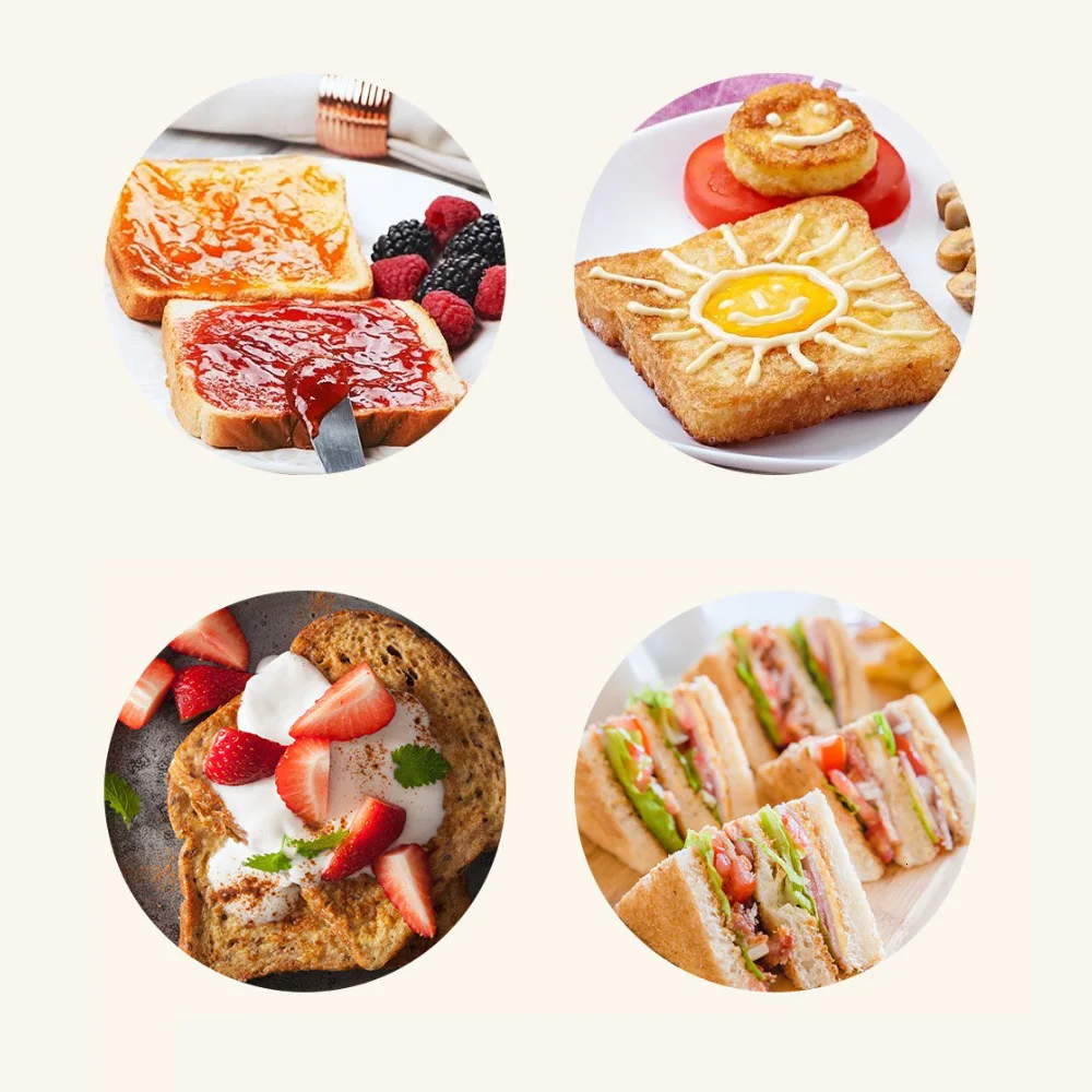 -Двусторонний нагрев, всего 2 минуты, чтобы выпечь необходимый вам мягкий и хороший хлеб.